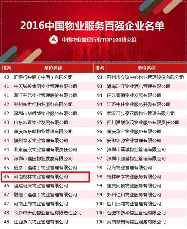 6月21日,《2016中國(guó)物業(yè)服務(wù)百?gòu)?qiáng)企業(yè)研究報(bào)告》在京發(fā)布。河南楷林物業(yè)管理有限公司憑借全新的運(yùn)營(yíng)態(tài)勢(shì)和綜合實(shí)力,榮膺2016中國(guó)物業(yè)服務(wù)百?gòu)?qiáng)企業(yè)??治飿I(yè),作為專注寫(xiě)字樓物業(yè)管理的服務(wù)企業(yè),躋身2016中國(guó)物業(yè)服務(wù)百?gòu)?qiáng)企業(yè)TOP 50排行榜。這是繼榮獲2015中國(guó)物業(yè)管理綜合實(shí)力百?gòu)?qiáng)后又一重磅性的榮耀,也再次印證了楷林品牌于中原物業(yè)行業(yè),乃至于全國(guó)物業(yè)行業(yè)所輻射的影響力。