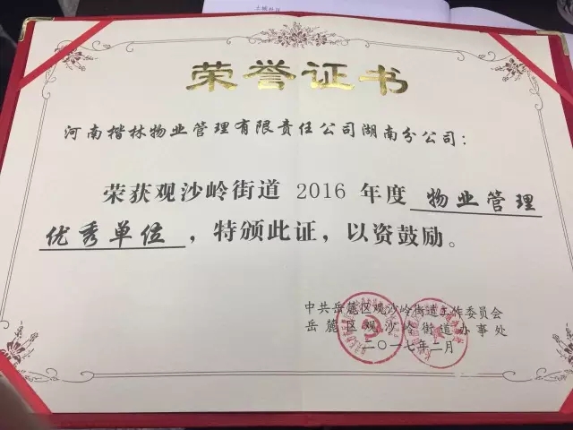 “2016年度物業(yè)管理優(yōu)秀單位”,