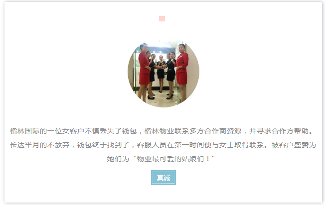 在楷林,前臺(tái)、客服、會(huì)務(wù)、保潔不再是簡(jiǎn)單的勞動(dòng)者,而是高端寫(xiě)字樓四大基礎(chǔ)服務(wù)重要的組成部分,是受人尊敬的、可愛(ài)的楷林人。她們經(jīng)過(guò)系統(tǒng)的崗前專業(yè)培訓(xùn)、禮儀禮節(jié)服務(wù)意識(shí)及自身素養(yǎng)的培養(yǎng),力圖將楷林物業(yè)人最完美的狀態(tài)極致展示。端莊大方、熱情周到的前臺(tái)接待,做事干練、聲音甜美的客服專員,儀態(tài)優(yōu)雅、微笑服務(wù)的會(huì)務(wù)團(tuán)隊(duì),技能嫻熟、操作規(guī)范的保潔大姐,她們無(wú)不在彰顯楷林作為高端寫(xiě)字樓的運(yùn)營(yíng)品質(zhì)。