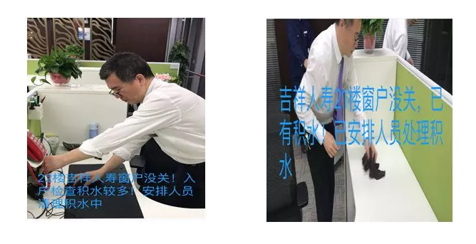 部門間積極響應(yīng)、迅速行動,僅用10多分鐘時間就將24層樓全部巡查、記錄完畢,并詳細記錄了出、進水的辦公室后,各部門分工合作,整理桌面的物品,擦拭桌面上的水。
