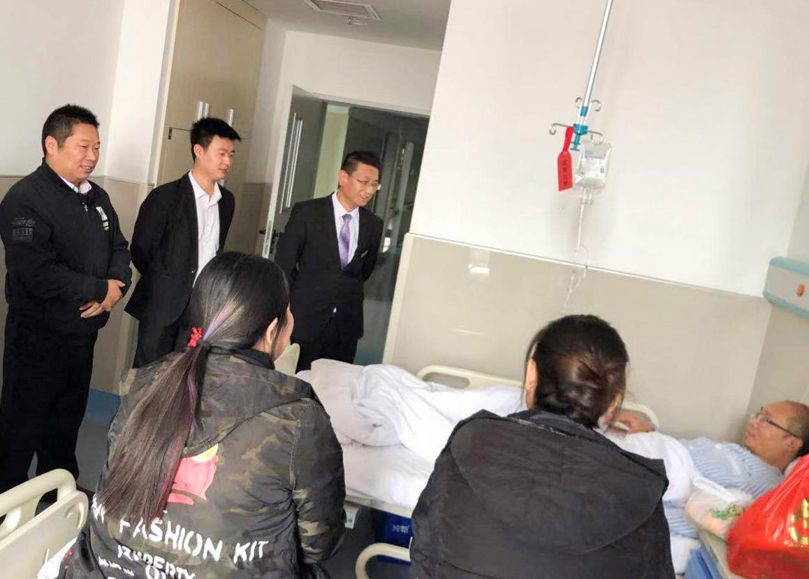 圖為楷林中心北區(qū)工作人員前往醫(yī)院探望病情