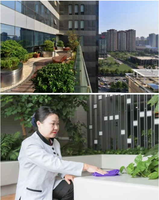 綠化人員每天清理清潔、定期綠化養(yǎng)護(hù),