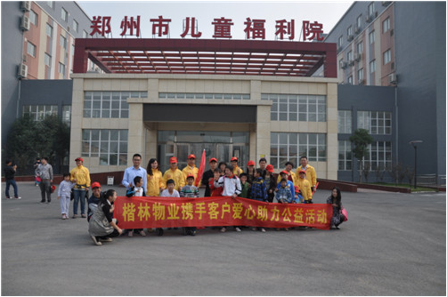 2014年10月26日上午,楷林物業(yè)攜手客戶20余人一行到訪鄭州兒童福利院愛心助力公益活動,平安人壽、恒昌財富、黃委經(jīng)濟(jì)局、薈智源策和東門翡翠作為客戶代表捐贈物品并參與了此次活動。