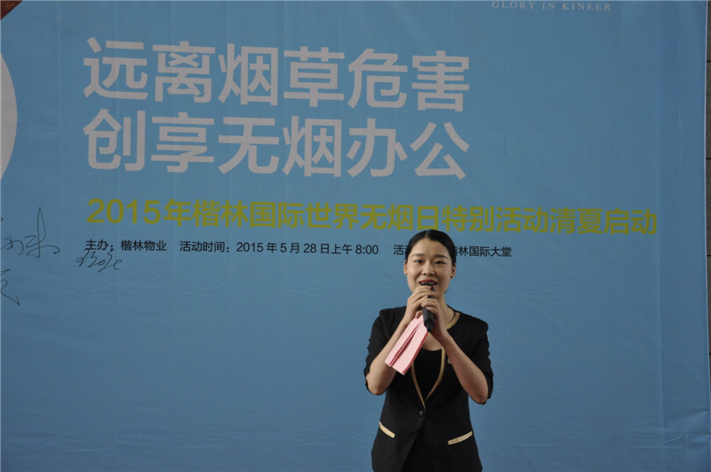 2015年5月31日,第28個(gè)世界無煙日。為宣揚(yáng)不吸煙的健康生活理念,楷林物業(yè)在管項(xiàng)目——信息大廈、楷林國際、楷林IFC,接力舉辦了無煙宣言大型公益活動(dòng)。