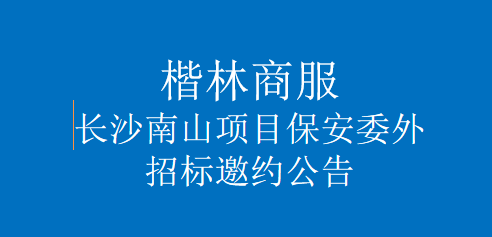 楷林商服南部大區(qū)南山項(xiàng)目保安委外招標(biāo)供方邀約公告我公司擬就楷林商務(wù)服務(wù)集團(tuán)南部大區(qū)南山項(xiàng)目保安委外招標(biāo)進(jìn)行供方邀請(qǐng)報(bào)名,茲邀請(qǐng)全國(guó)(長(zhǎng)沙區(qū)域有實(shí)管項(xiàng)目)相關(guān)優(yōu)質(zhì)公司前來(lái)報(bào)名投標(biāo)?,F(xiàn)將有關(guān)事項(xiàng)說(shuō)明如下:一、項(xiàng)目名稱(chēng):楷林商服南部大區(qū)南山項(xiàng)目保