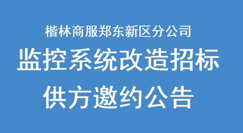 楷林商務(wù)中心北區(qū)監(jiān)控系統(tǒng)改造維修招標(biāo)供方邀約我公司擬就監(jiān)控系統(tǒng)改造維修招標(biāo)進(jìn)行邀請(qǐng)報(bào)名,茲邀請(qǐng)鄭州區(qū)域相關(guān)優(yōu)質(zhì)供應(yīng)商前來(lái)報(bào)名投標(biāo)?,F(xiàn)將有關(guān)事項(xiàng)說(shuō)明如下:一、項(xiàng)目名稱(chēng):楷林商務(wù)中心北區(qū)監(jiān)控系統(tǒng)改造維修招標(biāo)供方邀約。二、邀約主體:楷林商務(wù)服務(wù)集