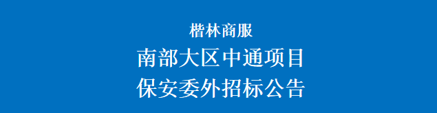 南部大區(qū)中通物流園項目保安委外招標供方邀約公告我公司擬就楷林商務服務集團南部大區(qū)中通物流園項目保安委外招標進行供方邀請報名,茲邀請全國(長沙區(qū)域有實管項目)相關(guān)優(yōu)質(zhì)公司前來報名投標?,F(xiàn)將有關(guān)事項說明如下:一、項目名稱:楷林商服南部大區(qū)中通物