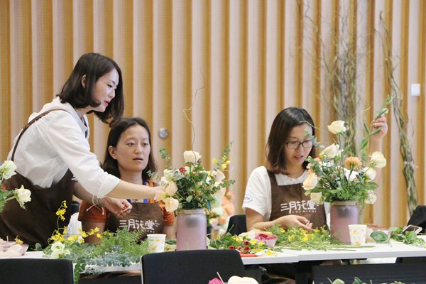 本次活動(dòng)邀請(qǐng)到了楷林中心三月花堂做現(xiàn)場花藝教學(xué)。下午一點(diǎn)半,活動(dòng)正式開始,首先由花藝師介紹花藝基礎(chǔ)造型知識(shí),有著豐富經(jīng)驗(yàn)的花藝師通過介紹花的流派、花型、花色等內(nèi)容讓在座用戶耳目一新。