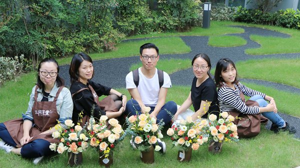 接下來現(xiàn)場插花體驗(yàn),用戶們紛紛拿起手邊的花材立意構(gòu)思,花型、剪花、裁葉、設(shè)計(jì)設(shè)計(jì)、調(diào)整作品,伴隨著花藝師的指點(diǎn),不斷得嘗試和實(shí)踐,經(jīng)過3個(gè)小時(shí)的親手實(shí)踐,一盆盆錯(cuò)落有致、生機(jī)盎然的插花作品展現(xiàn)在大家眼前。