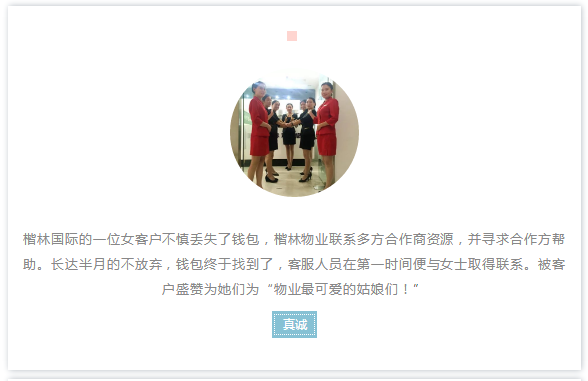 在楷林,前臺(tái)、客服、會(huì)務(wù)、保潔不再是簡單的勞動(dòng)者,而是高端寫字樓四大基礎(chǔ)服務(wù)重要的組成部分,是受人尊敬的、可愛的楷林人。她們經(jīng)過系統(tǒng)的崗前專業(yè)培訓(xùn)、禮儀禮節(jié)服務(wù)意識(shí)及自身素養(yǎng)的培養(yǎng),力圖將楷林物業(yè)人最完美的狀態(tài)極致展示。端莊大方、熱情周到的前臺(tái)接待,做事干練、聲音甜美的客服專員,儀態(tài)優(yōu)雅、微笑服務(wù)的會(huì)務(wù)團(tuán)隊(duì),技能嫻熟、操作規(guī)范的保潔大姐,她們無不在彰顯楷林作為高端寫字樓的運(yùn)營品質(zhì)。