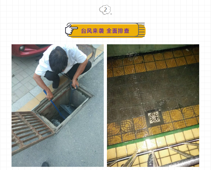 楷林物業(yè)各部門協(xié)同配合,對(duì)積水區(qū)域進(jìn)行疏通排泄,加強(qiáng)夜間巡查,確保各區(qū)域無(wú)水浸現(xiàn)象。