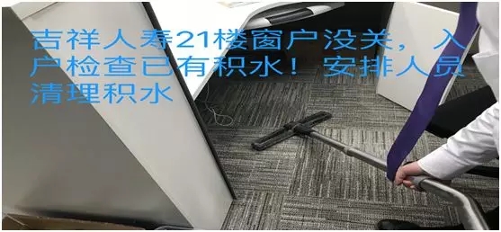 部分辦公室積水徹底滲入到地毯里面,可愛的楷林物業(yè)工作人員在積水辦公室中整整忙碌了3個多小時,不僅解決了積水問題,還及時排查各區(qū)域、各角落是否存在安全隱患。我們知道,守護的不僅僅是業(yè)主的資產(chǎn),還有我們一直傳承的楷林精神和文化。