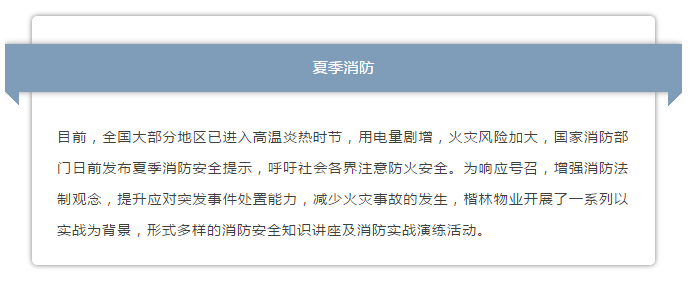此次消防實戰(zhàn)演練普及了楷林用戶和全體員工的消防安全知識,提高了安全防火意識,提升了楷林物業(yè)員工在處理突發(fā)事件過程中的協(xié)調(diào)配合能力,增強了演練人員在火災(zāi)中互救、自救意識,達到了最大限度的預(yù)防火災(zāi)和減少火災(zāi)危害發(fā)生的目的??治飿I(yè)也將持續(xù)關(guān)注消防,守護平安,夯實樓宇安全、保障用戶人身財產(chǎn)安全,為消防工作打下堅實基礎(chǔ)!