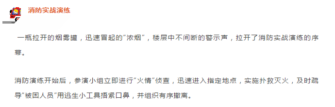 與此同時,楷林中心南區(qū)為每位參與活動的人員準備了一瓶礦泉水和一條折疊8層的毛巾,作為簡易逃生小道具應(yīng)用于即將開展的實戰(zhàn)演練活動中。