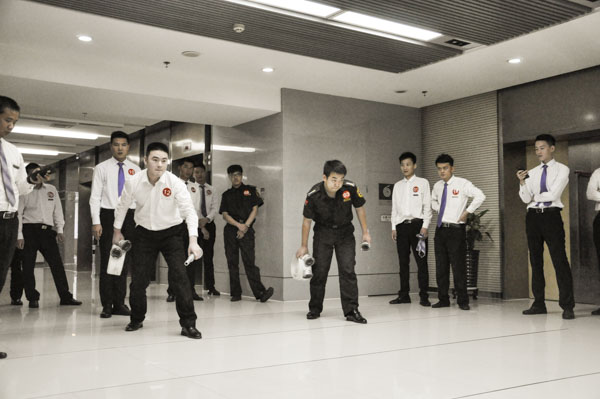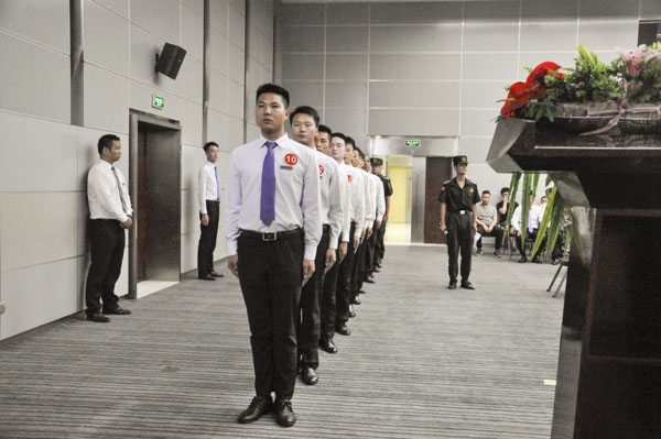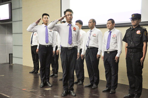 首先是來自楷林物業(yè)各項目的12位參賽選手,向觀眾及評委展示了嚴(yán)格標(biāo)準(zhǔn)的隊列操練。