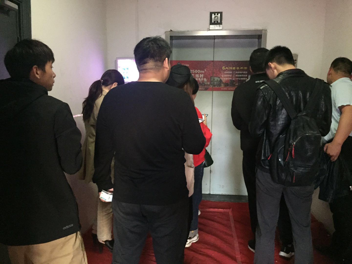 A、B座電梯廳內(nèi)各有一名客服助理為客戶控梯并輔助指引排隊(duì)。