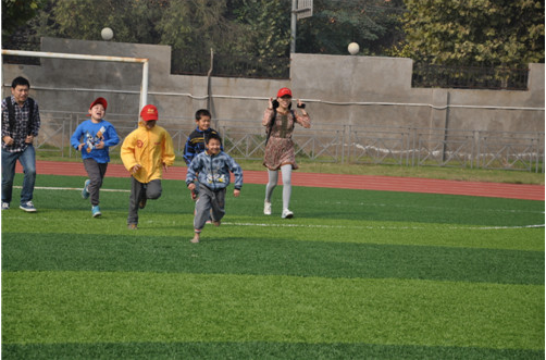 隨后,大家一起來到了孩子們所在的教室,看到我們的到來他們用各自的語言展示著內(nèi)心的興奮,奔跑著來到我們身邊,大家相擁著朝操場走去,去那里沐浴陽光,感受溫暖。兩人一組,三人一隊,大家互相介紹著,詢問喜好,聽那些孩子心中再簡單不過的夢想,感受他們的世界。我們與孩子們一起沉浸在屬于他們的王國里,這些孩子有的愛看書,有的愛跳舞,有的愛拍照,年齡大一點(diǎn)的孩子敏感且自卑著,他們需要我們的關(guān)注,需要更多的愛來驅(qū)趕內(nèi)心的孤僻。在操場嬉鬧的場景,特別像一個溫馨的大家庭,美好的時光總是過得很快,轉(zhuǎn)眼臨近十一點(diǎn),考慮到孩子們要午休,我們與他們一一惜別,活動在一片安靜中告一段落。