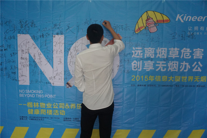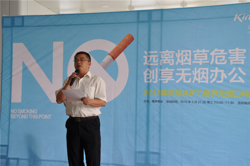 2015年5月31日,第28個(gè)世界無煙日。為宣揚(yáng)不吸煙的健康生活理念,楷林物業(yè)在管項(xiàng)目——信息大廈、楷林國際、楷林IFC,接力舉辦了無煙宣言大型公益活動(dòng)。