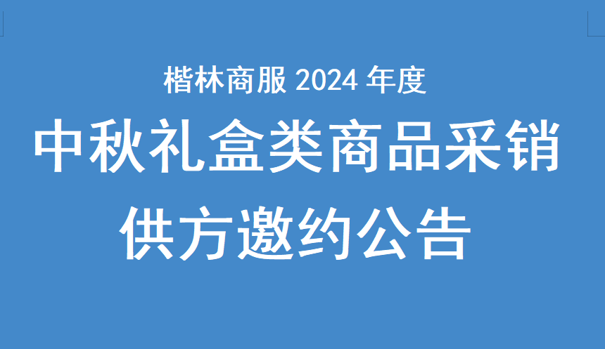 楷林商服2024年中秋禮盒類(lèi)商品采銷(xiāo)招標(biāo)供方邀約公告我公司擬就楷林商服公司所屬物業(yè)服務(wù)項(xiàng)目的中秋商品采銷(xiāo)招標(biāo)進(jìn)行邀請(qǐng)報(bào)名,茲邀請(qǐng)有相關(guān)資質(zhì)的優(yōu)質(zhì)供應(yīng)商前來(lái)報(bào)名投標(biāo)?,F(xiàn)將有關(guān)事項(xiàng)說(shuō)明如下:一、項(xiàng)目名稱(chēng):楷林商服2024年酒水類(lèi)采銷(xiāo)招標(biāo)邀約二、
