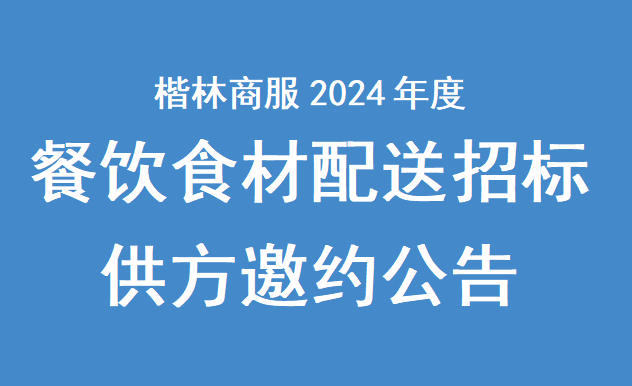 楷林商務(wù)服務(wù)集團(tuán)餐飲食材配送招標(biāo)供方邀約公告我公司擬就楷林商務(wù)服務(wù)集團(tuán)餐飲食材配送招標(biāo)進(jìn)行邀請(qǐng)報(bào)名,茲邀請(qǐng)有實(shí)力的相關(guān)優(yōu)質(zhì)供應(yīng)商前來(lái)報(bào)名投標(biāo)?,F(xiàn)將有關(guān)事項(xiàng)說(shuō)明如下:一、項(xiàng)目名稱(chēng):楷林商務(wù)服務(wù)集團(tuán)餐飲食材配送招標(biāo)供方邀約二、邀約主體:楷林商務(wù)