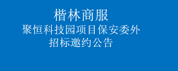 楷林商服聚恒科技園項(xiàng)目保安委外招標(biāo)供方邀約公告我公司擬就楷林商務(wù)服務(wù)集團(tuán)聚恒科技園項(xiàng)目保安委外招標(biāo)進(jìn)行供方邀請(qǐng)報(bào)名,茲邀請(qǐng)全國(guó)(長(zhǎng)沙區(qū)域有實(shí)管項(xiàng)目)相關(guān)優(yōu)質(zhì)公司前來(lái)報(bào)名投標(biāo)?,F(xiàn)將有關(guān)事項(xiàng)說(shuō)明如下:一、項(xiàng)目名稱(chēng):楷林商服聚恒科技園項(xiàng)目保安委外