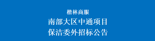 南部大區(qū)中通物流園項目保潔委外招標供方邀約公告我公司擬就楷林商務服務集團南部大區(qū)中通物流園項目保潔委外招標進行供方邀請報名,茲邀請全國(長沙區(qū)域有實管項目)相關(guān)優(yōu)質(zhì)公司前來報名投標?,F(xiàn)將有關(guān)事項說明如下:一、項目名稱:楷林商服南部大區(qū)中通物